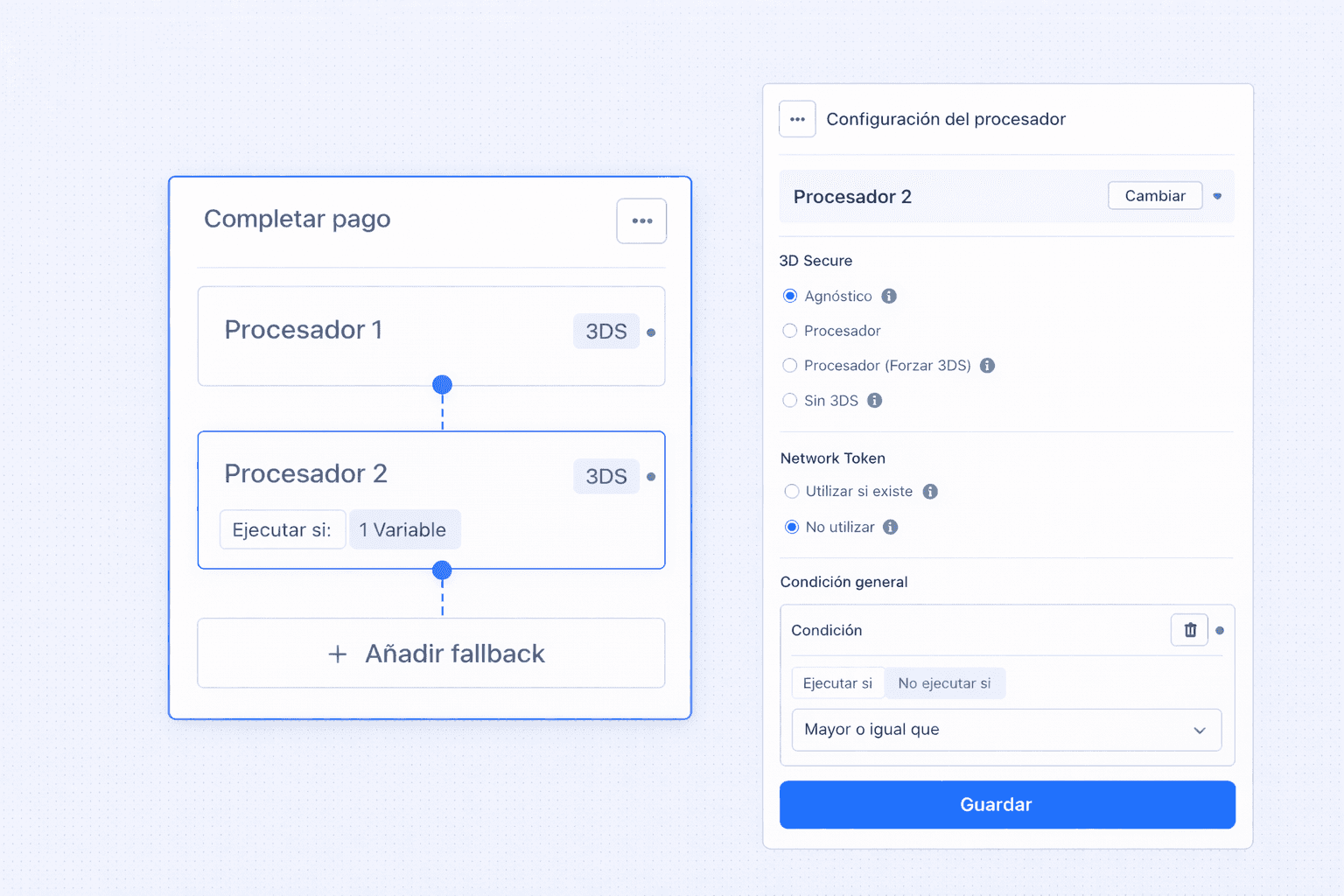Cada fallback se ejecuta o no en función de condiciones explícitas, definidas a partir de variables del propio pago. Son esas variables las que el sistema utiliza para aplicar la lógica definida por el equipo de pagos y ejecutar un reintento solo cuando tiene sentido.